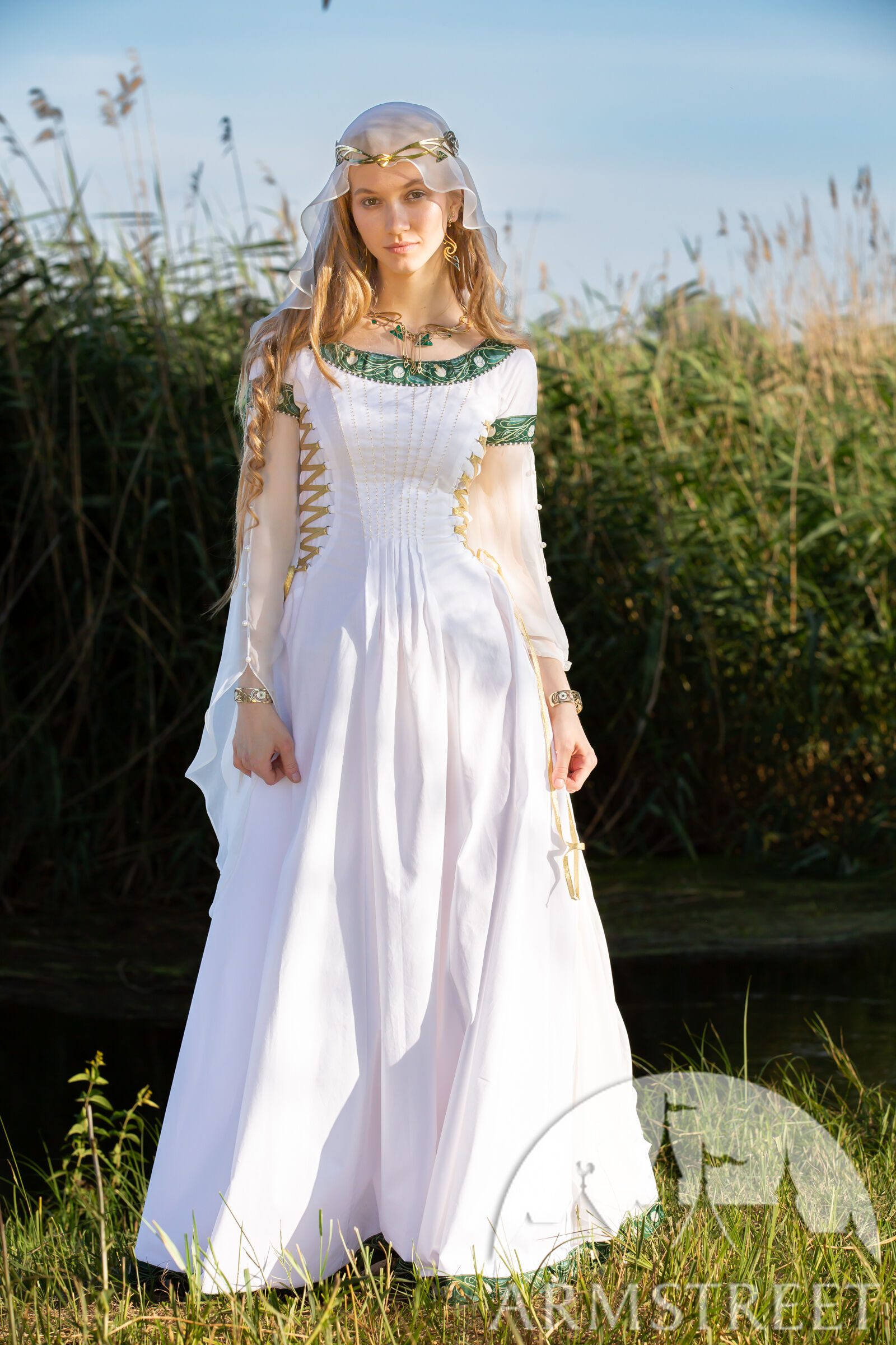 • Robe de mariée médiévale avec accessoires assortis ;