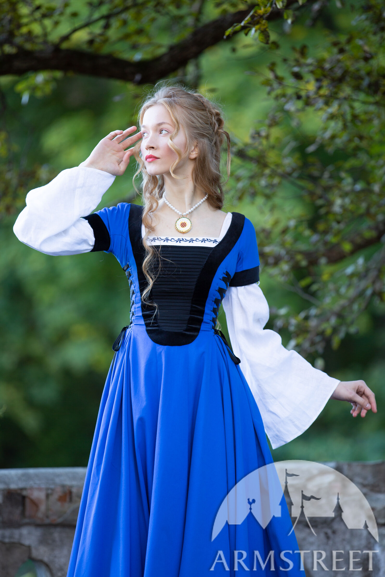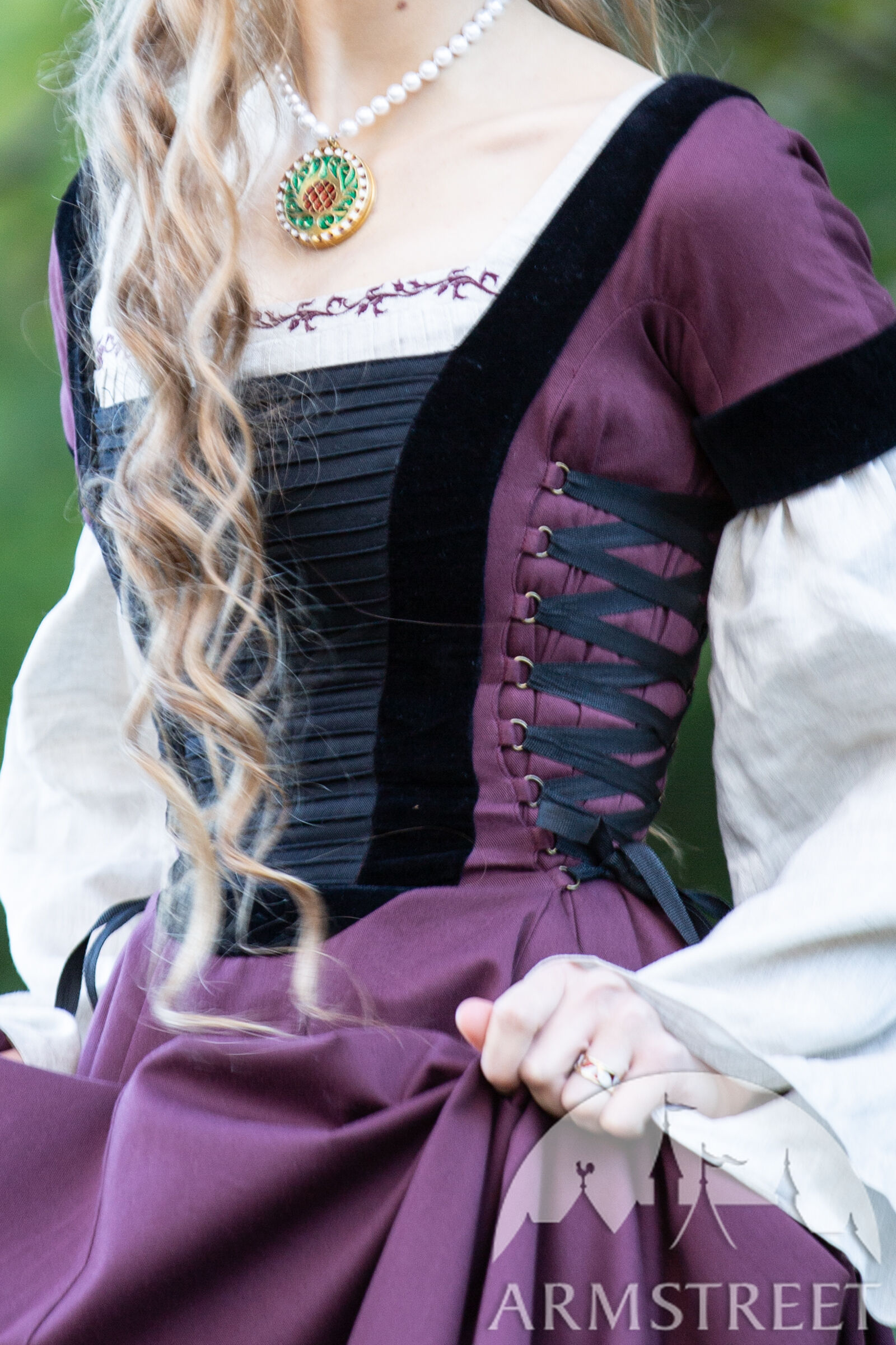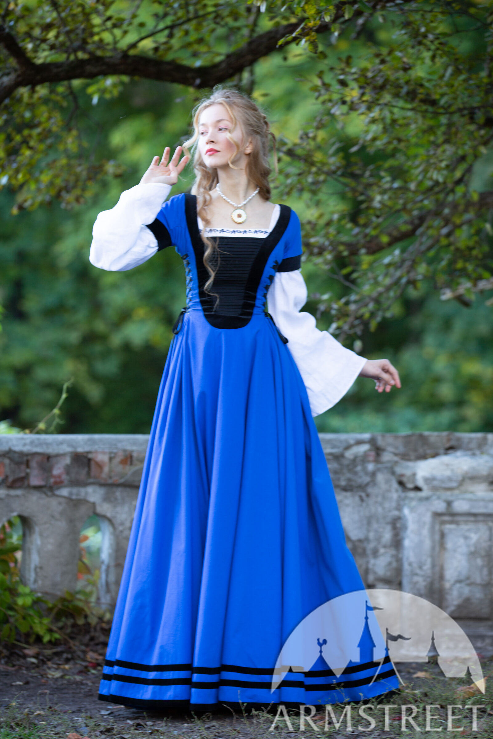 Ce costume Renaissance haut de gamme réunit tout ce qu'ArmStreet a à offrir aux clients les plus exigeants : un tissu naturel de grande qualité, un design unique, des finitions et des détails exquis, ainsi qu'une variété d'accessoires uniques pour personnaliser votre tenue. Nous ne sommes pas les seuls à vendre des costumes Renaissance, mais nous mettons tout en œuvre pour que votre costume se démarque et devienne votre préféré. Que ce soit pour une fête médiévale ou pour votre cérémonie de mariage, vous pouvez compter sur nous.