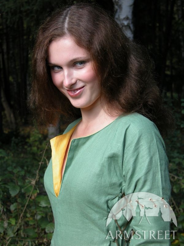 La conception de ce costume est notre version de costume décontracté en début de Moyen Age. Robe est faite de toile de lin naturelle de qualité avec laçage sur les côtés et aux manches. Deux caractéristiques sont importantes et inhabituelles. Premier est de laçage qui vous permet de faire cette robe de coupe mince ou large. La deuxième est que les manches sont réversibles et vous pouvez voir dans les photos ci-dessous comment vous pouvez faire cette robe plus contre si vous le souhaitez. Robe est faite de toile 100% naturelle de lin de haute qualité.