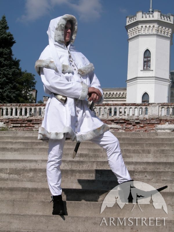 Costume consist of medieval coat "tappert" and hood "shaperon". Costume is made of high-quality velvet with faux-fur.