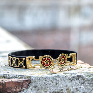 Nous recommandons de mettre par-dessous une chemise à cause de l’encolure assez basse. Notre chemise de la même série est une solution parfaite puisqu’elle est décorée d’une splendide encolure plissée et des manches houleuses. La robe kirtle de cette fiche-produit ne prévoit pas de manches bien qu’elle ait des attaches en haut des lanières pour attacher les manches à votre souhait.