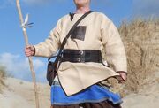 Nous avons basé le modèle sur la chemise "Viborg", une découverte historique du Danemark datant de 1000-1300 de notre ère. Alors que la chemise originale était en lin, nous avons ajouté à ce vêtement une touche unique, et l'avons transformée en une veste robuste conçue pour partir à l'aventure dans la forêt, explorer la toundra gelée ou cuisiner autour du feu sous la pluie! Cette veste se ferme grâce à une bascule sur le côté droit de la veste, qui est décentrée, tout comme la chemise Viborg, ce qui lui donne un aspect carré à l'encolure. Les manches spacieuses et beaucoup de soufflets font en sorte que la veste reste confortable. Elle a une silhouette ajustée et un léger évasement sur le bas, avec des fentes latérales pour s'assurer que rien ne vous empêche de marcher.