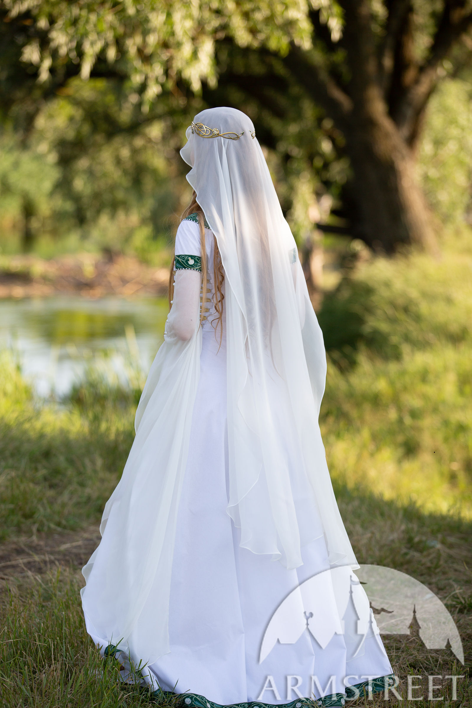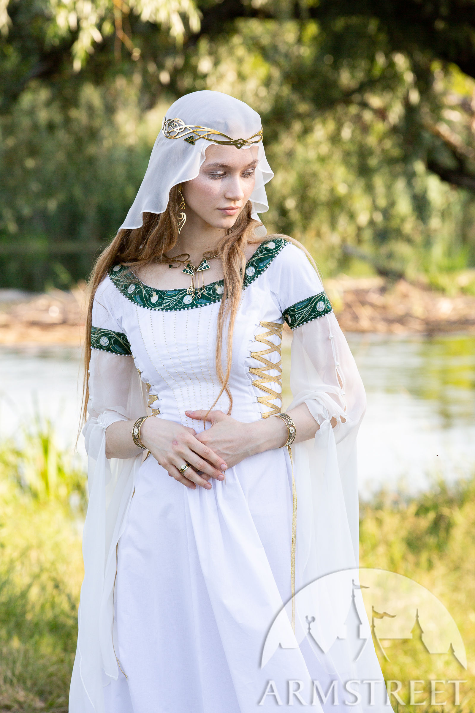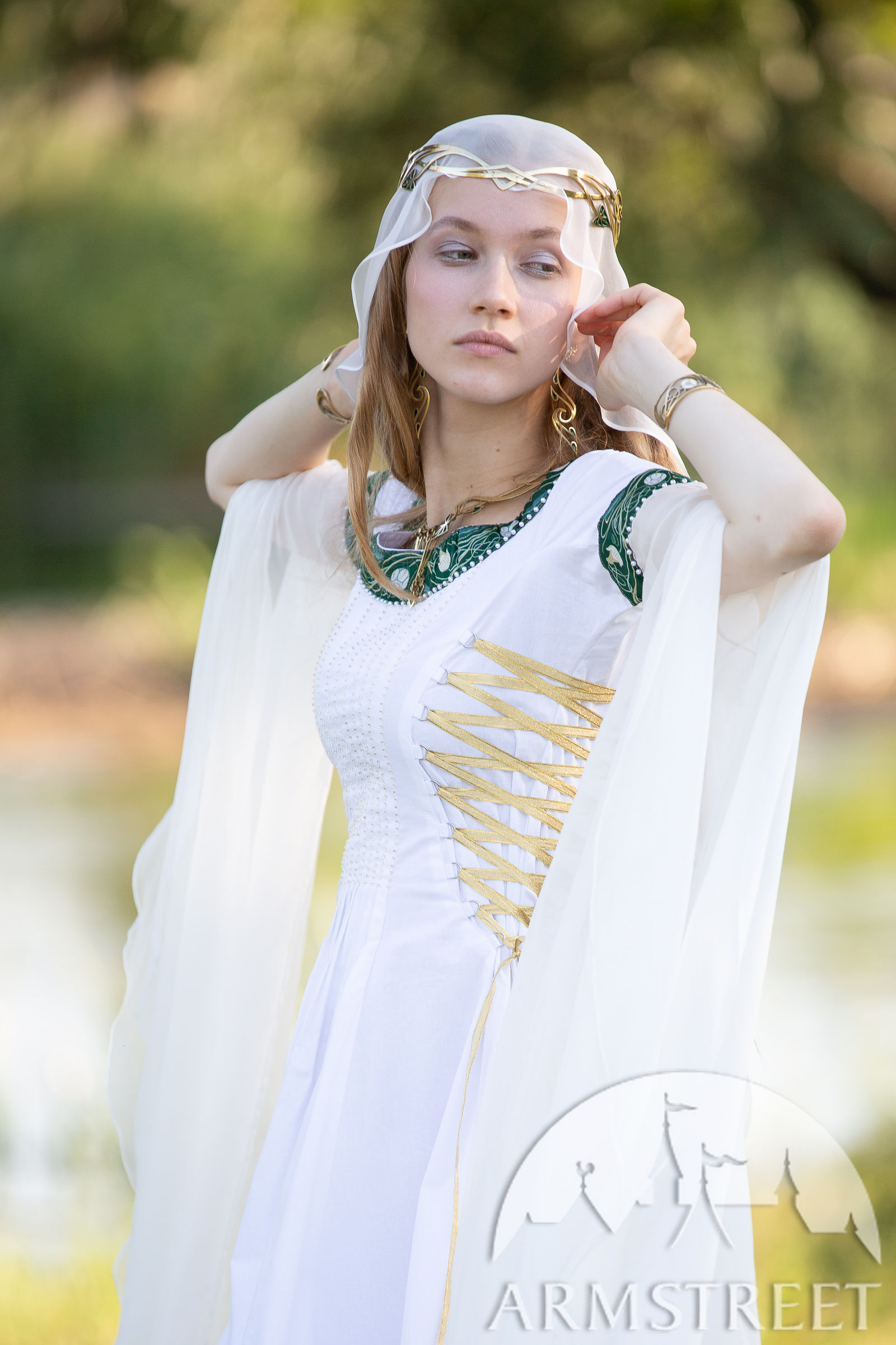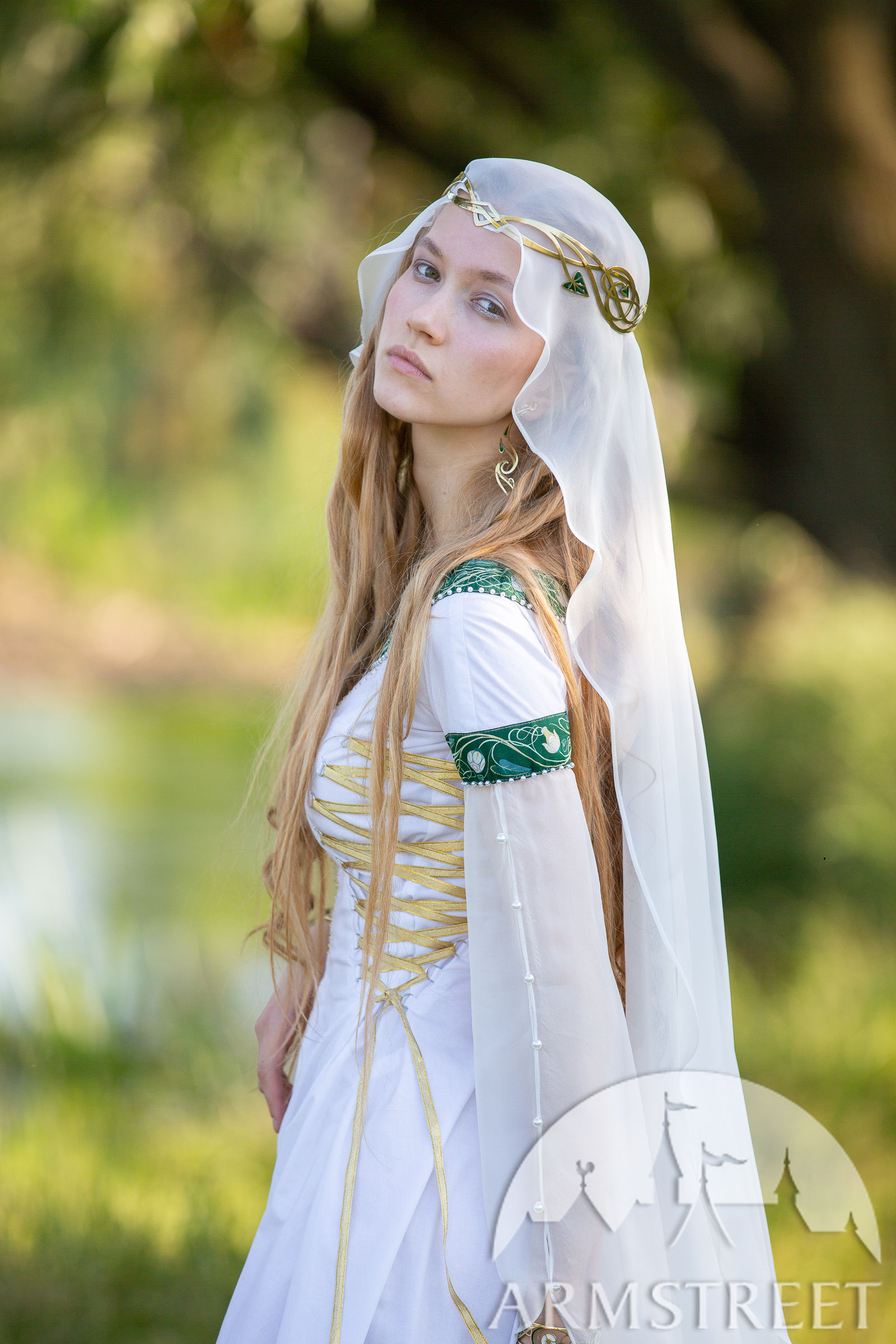 Notre collection « Fleurs d’Eau » est très féminine et légère, elle représente les motifs inspirés par les tenues médiévales, l’imaginaire elfique, la mythologie et les idées de l’Art Nouveau. Toute la collection est censée mettre en valeur la beauté naturelle féminine et inspirer le sentiment du romantisme insouciant qui vous entraînera dans les balades charmantes avec votre amour le long des rives mousseuses pour admirer la splendeur de la nature.